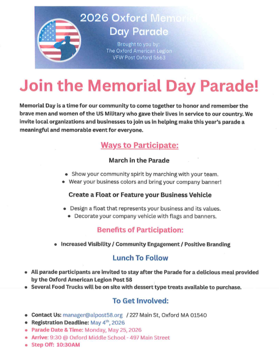 Thank you for partnering with us to help the students of Oxford learn and grow! Have a great week!